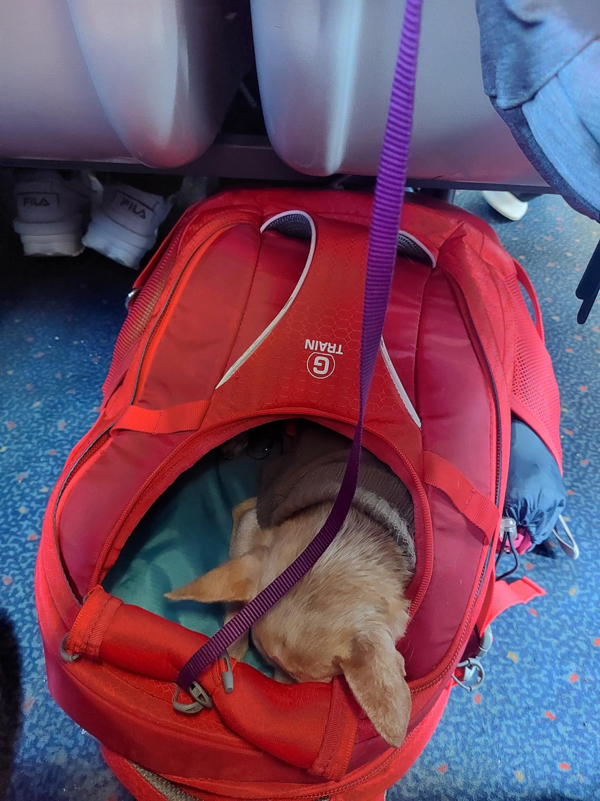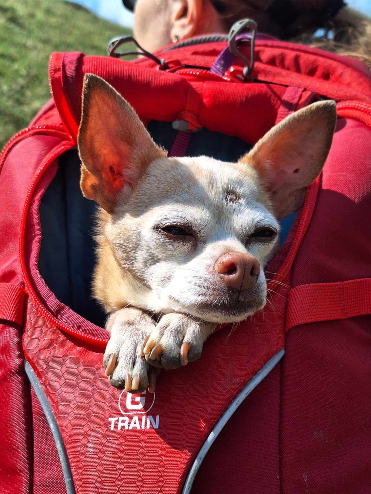 The most comfortable carrier for me and her! My old chihuahua can't walk as far as she used to (still manages a good 3 miles), but we never want her to miss out! We've had it a while now and we take it with us everywhere! Wherever we stop, she looks to me for her comfy travelling bed. This month we put it to the test on holiday in the Peaks! From the snooze she had on the train, the heights we managed with ease, to the sight seeing she relaxed into. It's a game changer and I high recommend!